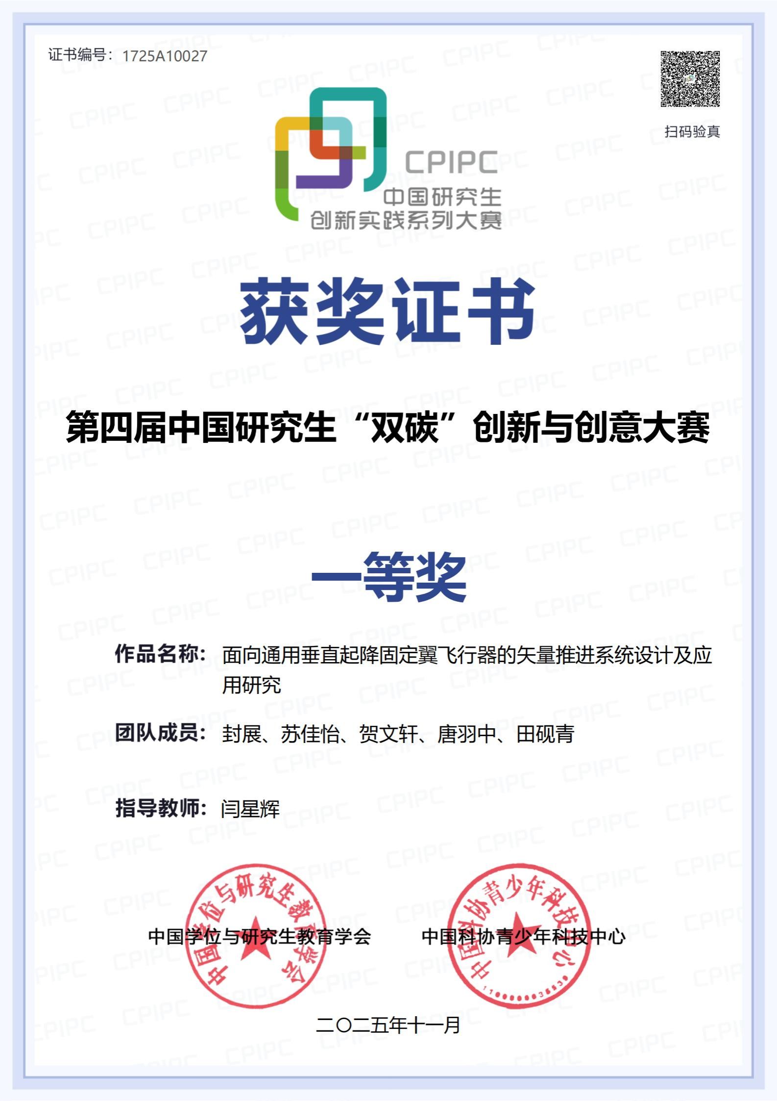 项目简介:项目聚焦通用垂直起降固定翼飞行器的矢量推进系统设计,融合垂直起降与固定翼高效巡航的技术优势,在降低飞行器全流程能耗的同时,有效减少跑道建设带来的资源消耗与碳排放,推动航空装备绿色升级,为实现航空产业低碳转型与“3060”双碳目标提供了关键技术支撑。目前,矢量推进器已完成起降、悬停等核心性能验证。