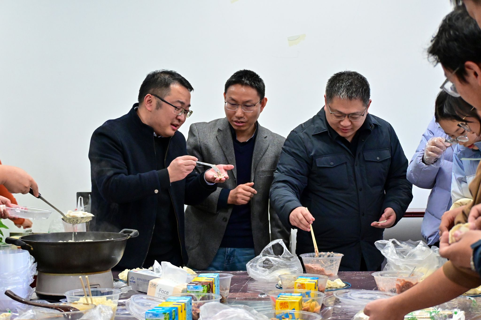 中午十二点,包饺子活动在热烈的掌声中拉开序幕。师生们纷纷戴好手套,满怀热情地投入这场美食创作中。